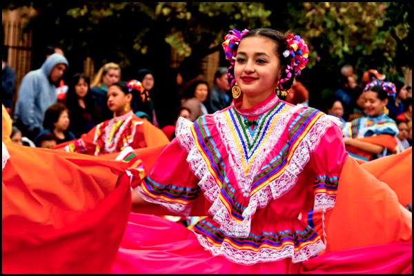 ![]() Brownsville, Texas --- Dancers in bright-colored costumes dance through the crowd at the Internatinal Parade of the 72 Annual Charro Days Fiesta. |