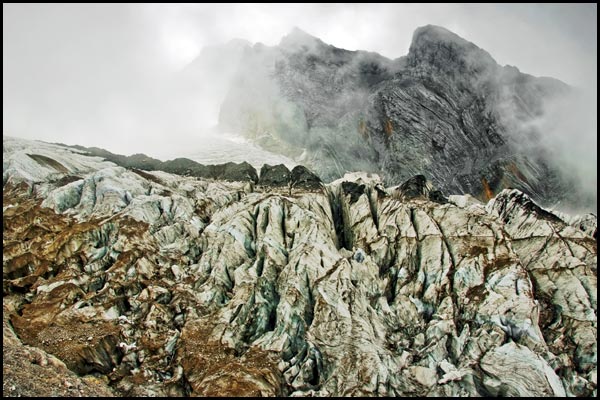 ![]() Lijiang, China --- Glacier in cloud on Yulong (Jade Dragon) Mountain more than 4600 m (15,100 ft) above sea level. This is the southmost glacier in the Northern Hemisphere. |