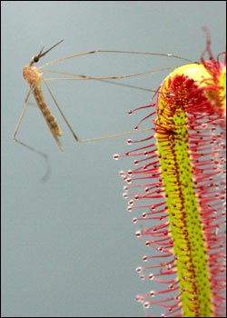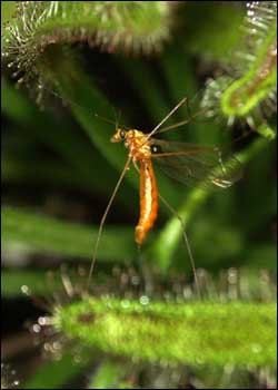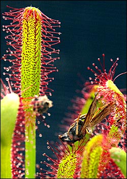 Trapping system: An individual sundew plant usually traps small insects.