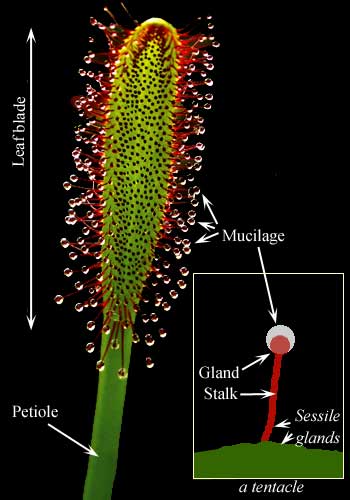 | Stalked glands: (tentacles) the peduncular glands that produce sweet sticky mucilage