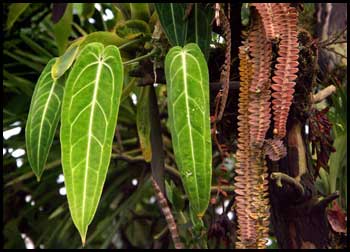 EpiphytesEpiphytes are plants that grow on other living plants. They are also called "air plants" since they do not grow on soil. Epiphytes absorb moisture from the air. They are not parasites — they use the host plant only for physical support, not as a nutrient source. Epiphtes generate energy through photosynthesis. However, they can overburden and damage the host plants if they grow too large. |