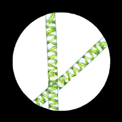 | desmid, closely related to spirogyra | "pond scum" or "water-silk" | also known as "water net" |