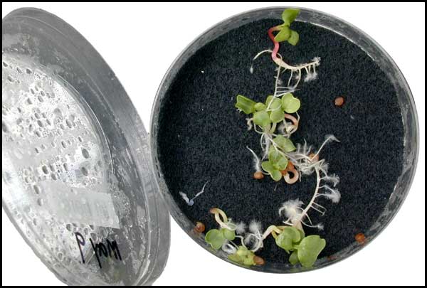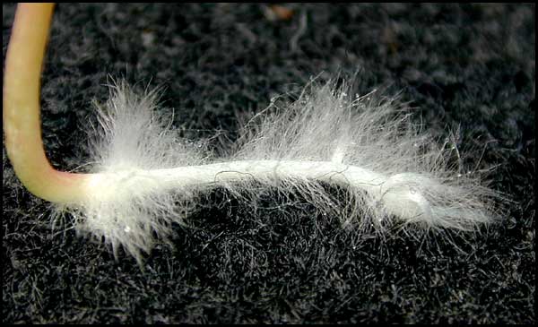 | Roots are the first things to grow from a seed. This exhibit shows the very hairy roots of young plants. These tiny root hairs give roots the ability to spread through the soil and absorb nutrients from it. | |