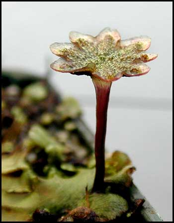 ![]() An umbrella-like male gametophyte on a flat leafy thallus. |