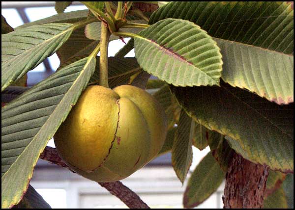 ![]() Dillenia indica (Elephant apple), Dilleniaceae Dillenia trees have very attractive large leathery leaves. They have huge solitary flowers that last for only a day. The fruit of the Dillenia tree has a sticky green mass of seeds, and tastes like an unripe apple. They are used to make drinks and jellies. They are popular with elephants, hence their common name: Elephant apple. |