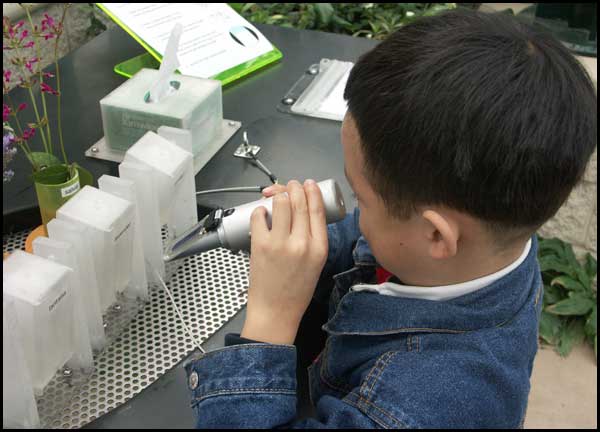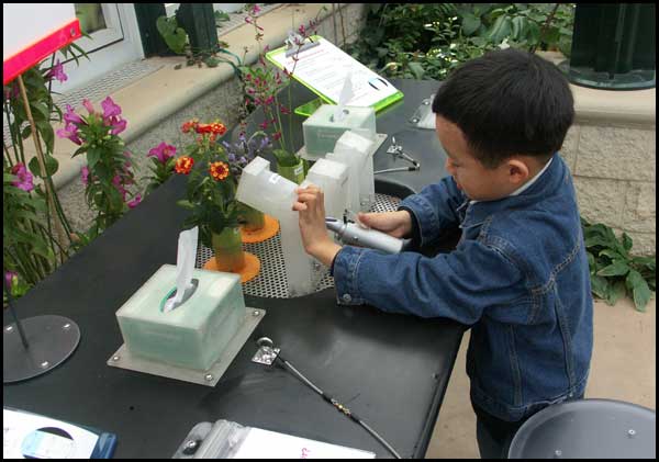 ![]() Using the refractometer to test how sweet the nectars are from different flowers. |