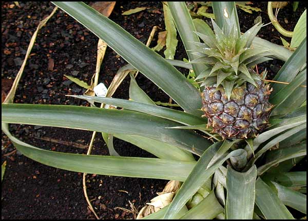 PineappleAnanas comosus, BromeliaceaeThe pineapple is a herbaceous perennial that is native to Brazil and Paraguay. It is a compound fruit that develops from the fusing of many small fruits. Pineapples have perfect flowers that can self-fertilize. Pineapples can also be produced without pollination and without seed formation by parthenocarpy (virgin fruit). |