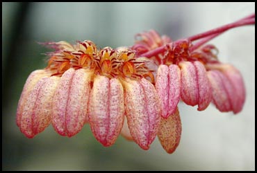 Cirrhopetalum (Cirr.)(cirrhus: hairy, fringe; petalon: petal)About 148 species. Epiphytes. Very closely related to Bulbophyllum and has recently included in the genus Bulbophyllum. |
