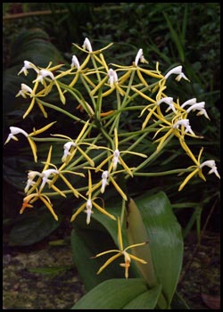 Epidendrum (Epi.)Star Orchid or Crucifix Orchid (Epi: on top of; dendrum: tree)More than 1,000 species. Native to tropical Americas. Mostly epiphic, few terrestrial. Reed-like stem. Pseudobulbs. Sympodial growth habit. |