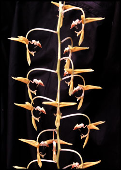 ![]() A single flower of Gongora (upper left) inflorescence |