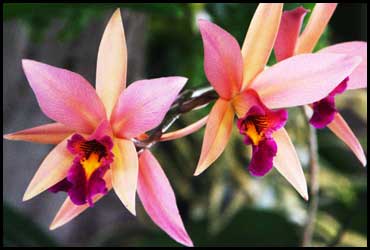 Ovate pseudobulb. Very closely related to Cattleya (4 pollinia) except Laelia has 8 pollinia.