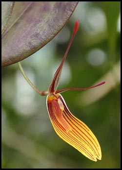 Restrepia (Rstp.)Pleurothalidinae. Closely related to pleurothallis.About 48 species. Usually in high altitutes in Central and S. America. Among the longest-blooming of all orchids. |